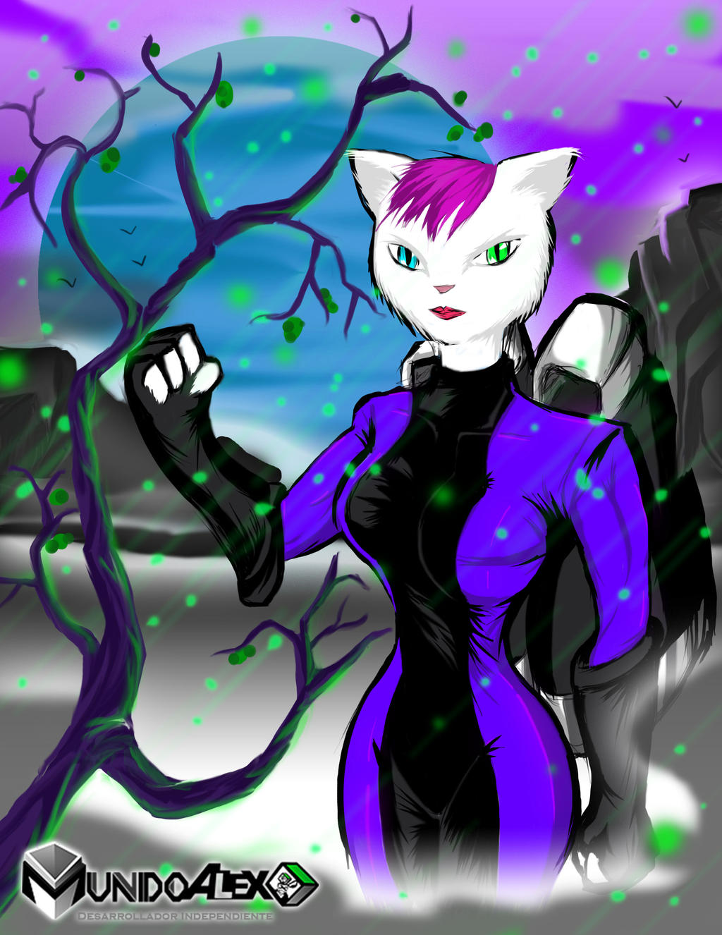 Esta imagen en cambio si tiene un propósito, esta gatita sexy se llama Mirsha y es uno de los personajes protagonista de mi historia llamada "Soluna" Junto con Drino y Alexo. Es una especie de gata guerrera con un carácter muy fuerte y dominante no te querrás topar con ella cuando se enoja.